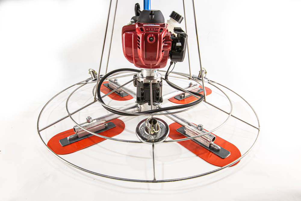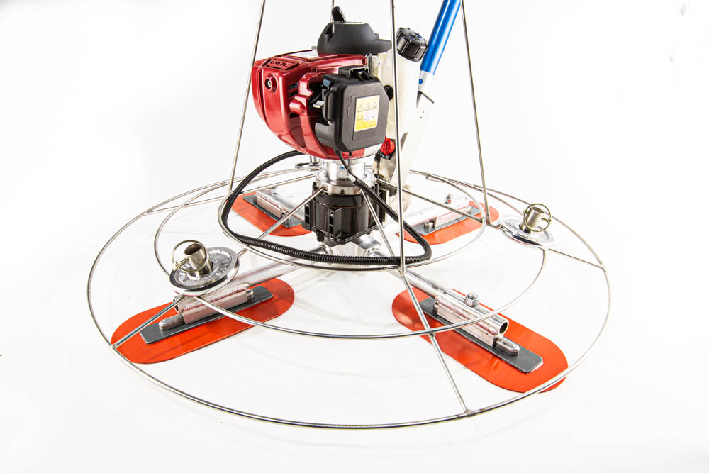 A lightweight trowel designed for finishing resinous surfaces like resin bound stone , epoxy stone carpets and PU screeds. Due to its light weight and possibility of extending the handle it can be successfully used in early finishing of concrete allowing faster installation. Additional weights are included, which can be added when the material requires better compaction . Works great on any resin bound material – stone, rubber and many epoxy coatings as well. Results in an unrivalled finish that cannot be achieved by hand trowelling or with heavier machines. Can be used after hand trowel application to remove trowel marks, or with weights and by experienced operatives, straight from the screed sledge.Specifications